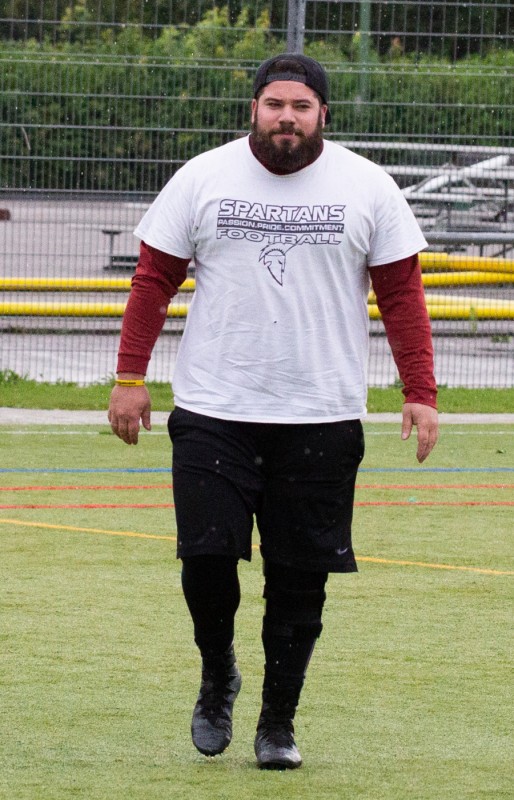 Mit Martin Grunert (Foto links, im Dress seines neuen Teams) hatte die U19 im Jahr 2017 ein besonderes „Aushängeschild“. Der Cornerback für die Teilnahme an der Jugendeuropameisterschaft in Paris immerhin einen Nachrückerplatz in der Jugend-Nationalmannschaft. Die Seniors hätten ihn mit offenen Armen aufgenommen, aber – wegen der Aufnahme des Studiums in Freiburg wechselte Martin zu Beginn dieser Saison zu den Freiburg Sacristans. Die haben den in der Jugend der Spartans bestens ausgebildeten Cornerback mit Handkuss bei sich aufgenommen. Er hat auch gleich die ersten beiden Matches der Saison gespielt und viel Einsatzzeit bekommen, musste aber dann aufgrund von Achillessehnenproblemen die nächsten drei Spiele aussetzen oder lediglich Kicker spielen. Nachdem die Verletzung abgeklungen war, konnte er seine Klasse unter Beweis stellen, indem er beim "Comeback" im ersten Spiel drei Pass-break-ups und am Ende eine Interception in der Endzone fertigbrachte und mit diesen Einzelleistungen entscheidend zum 14:14 Endstand beitrug.