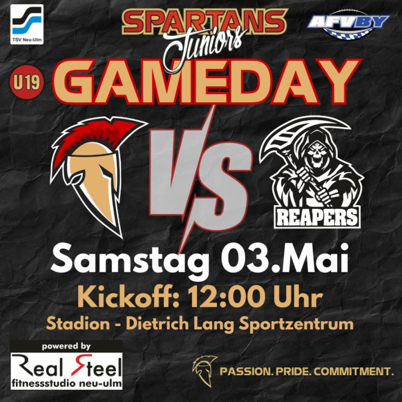 Die Spartans Juniors im TSV 1880 Neu-Ulm Spartans haben zu Gast: die Spielgemeinschaft Bayreuth / Hof ( @hof_jokers_juniors / @bayreuthdragons ). Mit den Reapers, wie sie sich selbst nennen, erwartet die Spartans ein Gegner auf Augenhöhe. Die bisherigen Spiele waren immer durch Spannung geprägt. Wir hoffen jedoch das die jungen Spartans an ihre Leistung vom Sonntag anknüpfen und den zweiten Sieg der noch jungen Saison einfahren können.