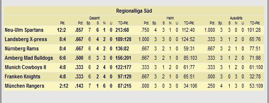 Die Spartans sind nun eine Woche spielfrei, dann geht es am 9. Juli zum Mitaufsteiger Amberg Mad Bulldogs, die man letztes Jahr im Halbfinale schlagen konnte.