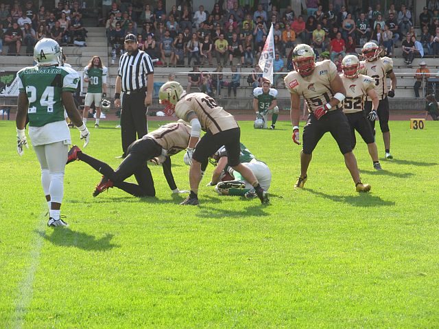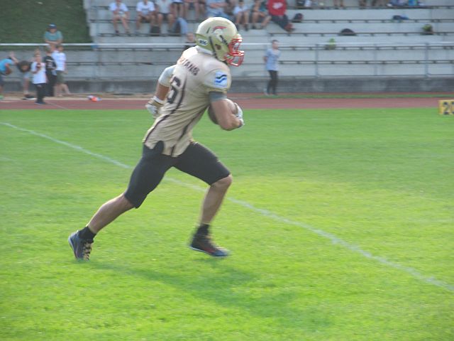 Spartans Head Coach Daniel Koch musste seine Mannschaft verletzungsbedingt auf mehreren Positionen umstellen. Entsprechend war deutlich bemerkbar, dass das Team in dieser neuen Besetzung einige Abstimmungsschwierigkeiten auswies. Maximilian Bär ersetzte Stamm-Quarterback Robin Otto und leitete die Angriffe der Neu-Ulmer. Auch wenn zum Spielende keine Punkte stehen sollten, demonstrierte er bei seinem QB-Debut versprechende Ansätze. Ganz anders hingegen zeigte sich der Gastgeber aus Landsberg, der sich bestens auf die Spartans eingestellt hatte und die Schwäche der Gäste konsequent ausnutzte. Konnten das erste Viertel noch knapp bei 6:0 gehalten werden, sicherte sich Landsberg in den zweiten und dritten Vierteln einen deutlichen Vorsprung. Dabei waren sie vor allem mit tiefen Pässen gegen die dezimierte Defensive erfolgreich. Neu-Ulm versuchte sich gegen die Niederlage zu stemmen , doch gegen die Landsberger war an diesem Tag nichts zu holen.