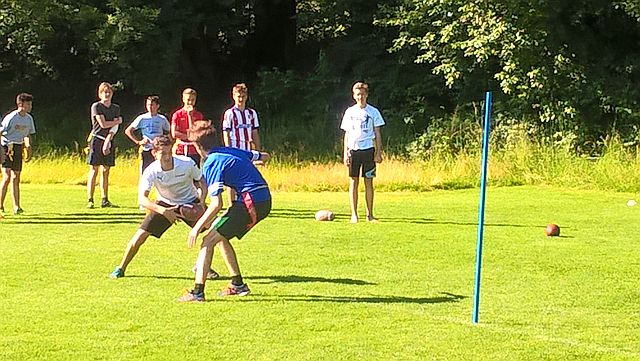 American Football liegt im Trend. Nachdem die US-Profiliga im deutschen Fernsehen übertragen wird, steigt auch hierzulande das Interesse an diesem faszinierenden Sport. So auch am Alexander-von-Humboldt-Gymnasium Konstanz, welches American Football im Rahmen seiner Projekttage anbot. Um den 25 interessierten Teilnehmern das Fachliche nahezubringen, leiteten die Neu-Ulm Spartans das Training. An den vier Tagen dieses Projektes lernten die Schüler unter anderem das richtige Passen und Fangen, wie man blockt, oder studierten einzelne Spielzüge ein. Wichtig hierbei war die Kombination aus Spaß am Sport und den footballerischen Grundlagen. Am Schlusstag des Projekts konnten die Schüler ihr Gelerntes bei einem Spiel unter Beweis stellen, bevor es zur abschließenden Pizza-Party überging.