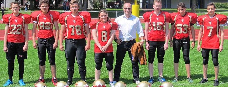Hier setzt die Günter Steinle Fondation an und spendet zehn Ausrüstungen, damit zukünftig weitere Jugendliche ohne diese Kosten am Schnuppertraining und in den ersten Wochen teilnehmen können. Bereits seit 1973 fördert die Günter Steinle Fondation soziale, sportliche und kulturelle Projekte und hat sich entschlossen auch dem Football-Nachwuchs unter die Arme zu greifen. "Das Konzept auf den Nachwuchs zu setzen und die sehr gute Arbeit die hier bisher geleistet wurde, hat mich überzeugt", beschreibt Günter Steinle sein Engagement. Abteilungsleiter Klaus Weiß ist für diese Unterstützung dankbar. "Für uns ist die Jugend- und Nachwuchsarbeit ein wichtiger Bestandteil der Spartans. Die Günter Steinle Fondation ermöglicht es uns vielen interessierten Jugendlichen die Möglichkeit zu geben, unseren Sport für sich zu entdecken. Im Namen der Neu-Ulm Spartans möchte ich mich hierfür recht herzlich bei den Günter Steinle Fondation bedanken", so Weiß.