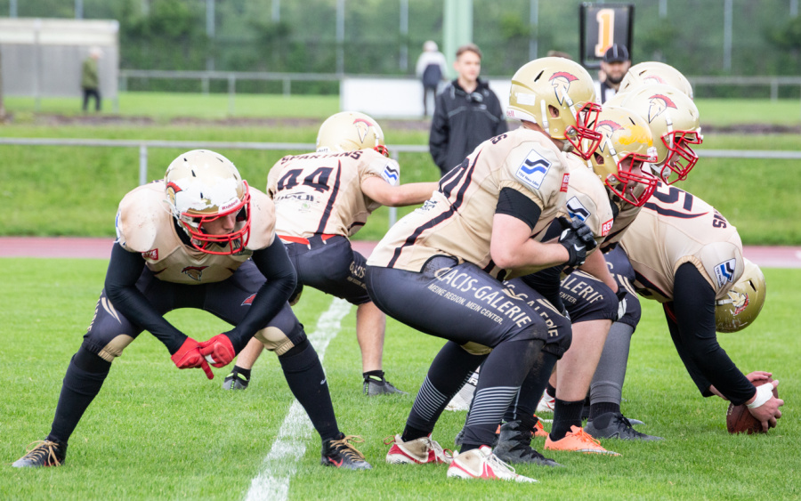 Anton Schoger (#65) als Center, auch ein Eigengewächs der Spartans, vor zwei Jahren zum Seniorteam dazugestoßen mit seinen meist perfekt sitzende Zuspielen auf den Quarterback trug so zum Erfolg bei wie auch andere neu ins Team integrierte Spieler,