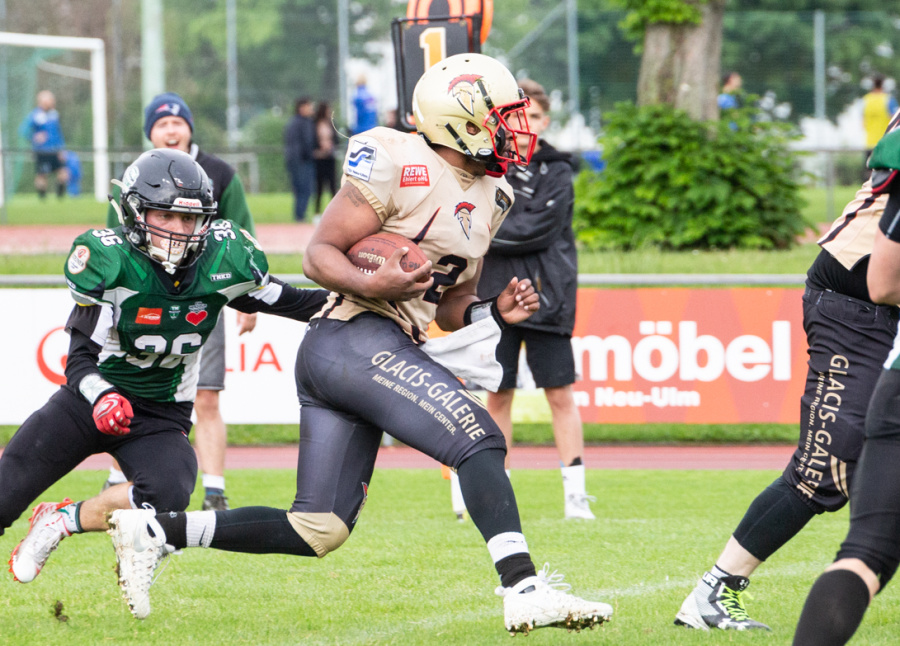 63:0 (7:0 / 28:0 / 21:0 / 7:0) hieß es am Ende auf dem Scoreboard. Die Neu-Ulm Spartans fegten nach dem Gewitter, welches den Kickoff um eine Viertelstunde verzögert hatte, Traunreut Munisier wie ein Tornado vom Platz. Das Publikum traute seinen Augen nicht, die knapp 400, die trotz miserabler Wetterprognose ins Dietrich-Lang-Stadion gefunden hatten, blieben praktisch vollzählig bis zum Abpfiff und feierten mit der Mannschaft. Auch die war euphorisiert, nur Cheftrainer Daniel Koch blieb, wie gewohnt cool, und wusste dieses außergewöhnliche Ergebnis wohl einzuordneten (siehe Interview am Schluss dieses Berichts).