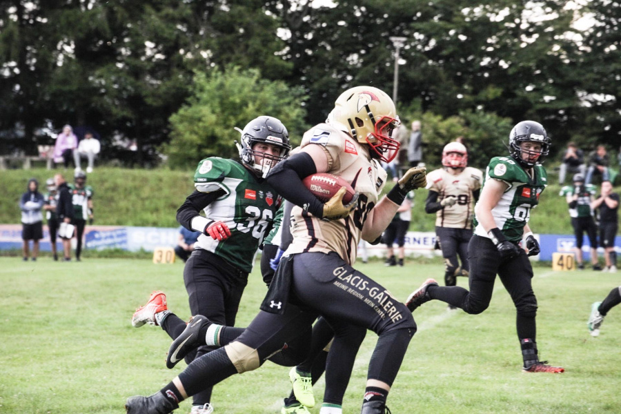 Steffen Ganghof 6 PATs, Eddie Jewel 2 TDs, Patrick Schempf 1 TD, Johannes Mörz 1 TD nach Pass von Jewel, Valentin Friedl 1 TD nach Pass von Johannes Mörz