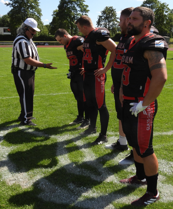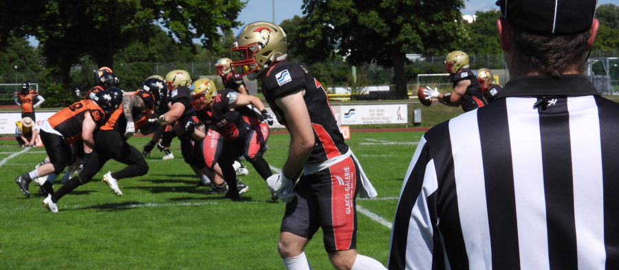 "In der Halbzeit gab es für uns Coaches nicht viel zu sagen, außer Lob für die Offense, die auch in dieser Konstellation sbestens funktioniert hat. Dass Patrick in seinem ersten vollen Spiel als Quarterback in der ersten Halbzeit zwei Touchdowns wirft und drei selbst erläuft, sind schon unglaubliche Zahlen. Und das, wo er die Position seit zwei Jahren nicht trainiert hat, weil er sonst als Wide Receiver so starke Leistungen liefert", sagte Headcoach Daniel Koch als Zwischenfazit.