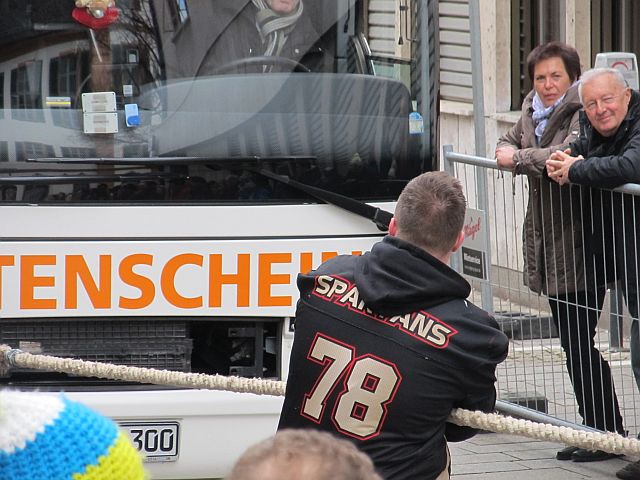 Vergangenes Jahr wurden die Neu-Ulm Spartans süddeutscher Meister im Buspulling, entsprechend traten die Footballer dieses Jahr zur Titelverteidigung an. Bei der 14. Auflage der Meisterschaft vergangenen Sonntag in der Ehinger Innenstadt konnte das Team jedoch abermals nicht gestoppt werden. In der Zeit von 15.78 Sekunden zogen sie den 12 Tonnen schweren Bus über die 30 Meter Strecke. Auch das zweite Team der Spartans demonstrierte die richtige Mischung aus Kraft, Ausdauer, und Technik, und erreichte in der starken Konkurrenz von 10 Mannschaften einen respektablen vierten Platz. Dabei unterboten sie mit 16.21 Sekunden ebenfalls die Siegerzeit des vergangenen Jahres.