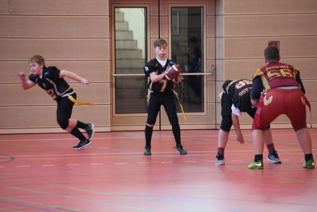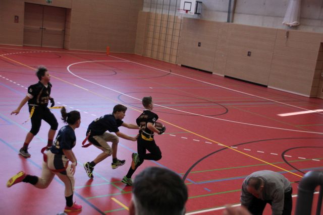 Erst vergangenes Jahr wurde die U13 der Football-Abteilung gegründet und dennoch präsentiert sich das Team bereits jetzt als Siegermannschaft. In der ersten Spielzeit wurden sie sensationell Dritter bei den bayrischen Meisterschaften auf dem Feld, nun blieb das Flag-Team der Trainer Richard Addison und Michael Höchsmann beim allerersten Hallenturnier ungeschlagen.