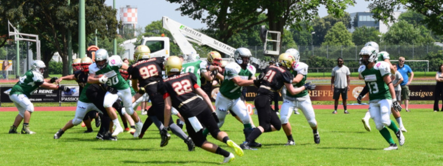 Zum Spiel-Beginn sah es allerdings nicht unbedingt danach aus. Ein nicht festgehaltener Ball – und der X-Press nutzte diesen Fumble direkt zu einem Touchdown. Auch den Extrapunkt konnten die Gäste nach gelungenem Kick durch die Stangen für sich verbuchen. Der schnelle 0:7-Rückstand schockte die Hausherren nur mäßig. Während des gesamten Matches agierte die Defense absolut überragend, ließ den X-Press überhaupt nicht mehr ins Rollen kommen, sondern stoppte ihn regelmäßig äußerst effektiv und ließ keinen weiteren Punkt mehr zu.