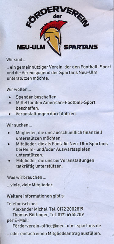 Helft uns, den Football-Sport in Neu-Ulm noch größer werden zu lassen.