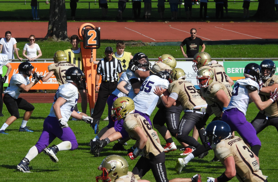 Beim zweiten Heimspiel im "Bavarian Bowl", dem Ersatzwettbewerb für die ausgefallene Meisterschaftsrunde der Bayernliga-Saison 2021 bei strahlendem Sonnenschein, strahlten am Ende die Gäste aus Passau mehr als die Spartans-Gesichter.