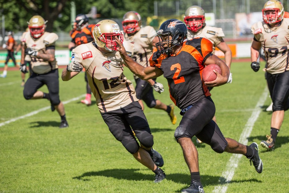 Auf dem Feld war bei diesem Spiel zu sehen, dass die Spartans-Offense im Laufspiel zwar über Strecken des Spiels sehr dominant auftrat, dies aber erst nach einem frühen Rückstand von schnellen 21 Münchner Punkten zeigen konnte und im Pass-Spiel zahnlos agierte. Positive Ausnahme war hier der erste Spartans Touchdown nach Pass von Neu-Quarterback Matthias Glaser auf Lasse Bartels. Die Gäste hingegen waren insbesondere durch ihren Quarterback Brandon Watkins (#2) brandgefährlich, der mit seinen Läufen mitunter die halbe Spartans-Verteidigung austanzte und sich so für den Großteil der Offensiv-Aktionen im Alleingang verantwortlich zeigte. Spartans-Defense-Coordinator Marcus Fritz dazu: „Wir wussten, dass sie mit einer explosiven Offense aufschlagen würden. Der Quarterback, stellte uns in der Defense immer wieder vor eine schwer zu lösende Aufgabe! Er konnte viele Tackle-Versuche unserer Defense, bis dahin die beste der Liga, abwehren und daraus jede Menge Raum gewinnen. Vor allem die neuen Spieler in unserer Verteidigung hatten ein Problem mit seiner Geschwindigkeit! Zudem kam oft eine unglückliche Ausgangsposition mit wenig Feld im Rücken hinzu!“