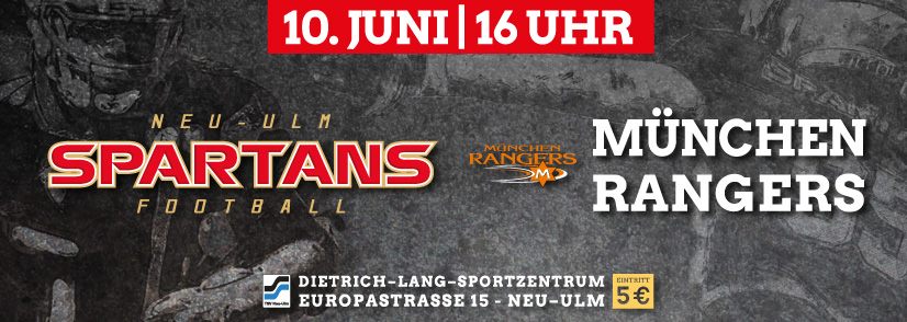 An diesem Samstag (10. Juni, Beginn 16 Uhr) haben die Neu-Ulm Spartans die München Rangers zu Gast. Da gilt es, in der Football-Arena am Muthenhölzle nach dem Sieg gegen die Franken Knights zum Saison-Auftakt nun auch den anderen Absteiger aus der 2. Bundesliga zu schlagen. Keineswegs eine unmögliche Aufgabe, sind doch die München Rangers in der Football-Regionalliga Süd bislang beinahe genauso glücklos wie die Rothenburger. Bislang konnten sie nur einmal siegreich vom Feld gehen – ausgerechnet gegen die Ritter von der Tauber, gegen die sie im vorigen Jahr in der GFL 2 nichts zu bestellen hatten.