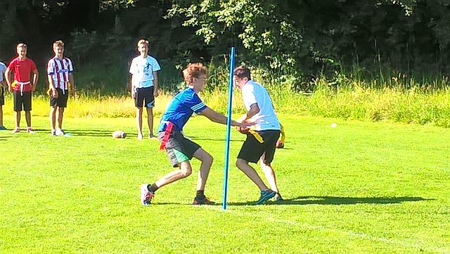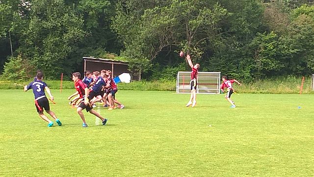 American Football liegt im Trend. Nachdem die US-Profiliga im deutschen Fernsehen übertragen wird, steigt auch hierzulande das Interesse an diesem faszinierenden Sport. So auch am Alexander-von-Humboldt-Gymnasium Konstanz, welches American Football im Rahmen seiner Projekttage anbot. Um den 25 interessierten Teilnehmern das Fachliche nahezubringen, leiteten die Neu-Ulm Spartans das Training. An den vier Tagen dieses Projektes lernten die Schüler unter anderem das richtige Passen und Fangen, wie man blockt, oder studierten einzelne Spielzüge ein. Wichtig hierbei war die Kombination aus Spaß am Sport und den footballerischen Grundlagen. Am Schlusstag des Projekts konnten die Schüler ihr Gelerntes bei einem Spiel unter Beweis stellen, bevor es zur abschließenden Pizza-Party überging.