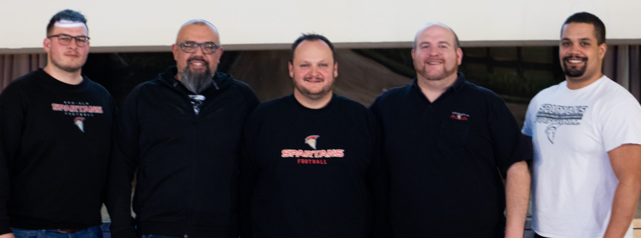 Bei der Jahreshauptversammlung der Neu-Ulm Spartans, der Abteilung American Football im TSV 1880 Neu-Ulm, wurde Abteilungsleiter Klaus Weiß (Bild: Mitte) für weitere zwei Jahre im Amt bestätigt. Zu seinem Stellvertreter wurde neu gewählt: D-Line-Coach David Gonzalez (Zweiter von links) an Stelle des bisherigen Stellvertreters Nico Ailinger (Zweiter von rechts), den die Wahlberechtigten auf den Kassierer-Posten rochieren ließen. Außerdem wurde ihm mit den Kassenprüfern Florian Kunstmann und Simon Weber tatkräftige Unterstützung zur Seite gestellt. Um die Arbeit im Vorstand besser verteilen und Klaus Weiß, der auch die U15 coacht, entlasten zu können, wurden in die neu-eingerichteten Beisitzerpositionen gewählt: Steffen Ganghof (ganz links) und Jermaine Wolff (ganz rechts).
