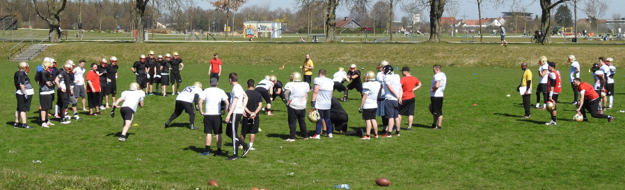 traf sich der helle Haufen im Wiley-Gelände, um sich bei bestem Sportwetter nicht bloß einen Sonnenbrand zu holen (Jungs, cremt Euch demnächst ein!), sondern: um sich von den Coaches weiteren Schliff verpassen zu lassen. Wir haben zugeschaut und ein paar Impressionen gesammelt.