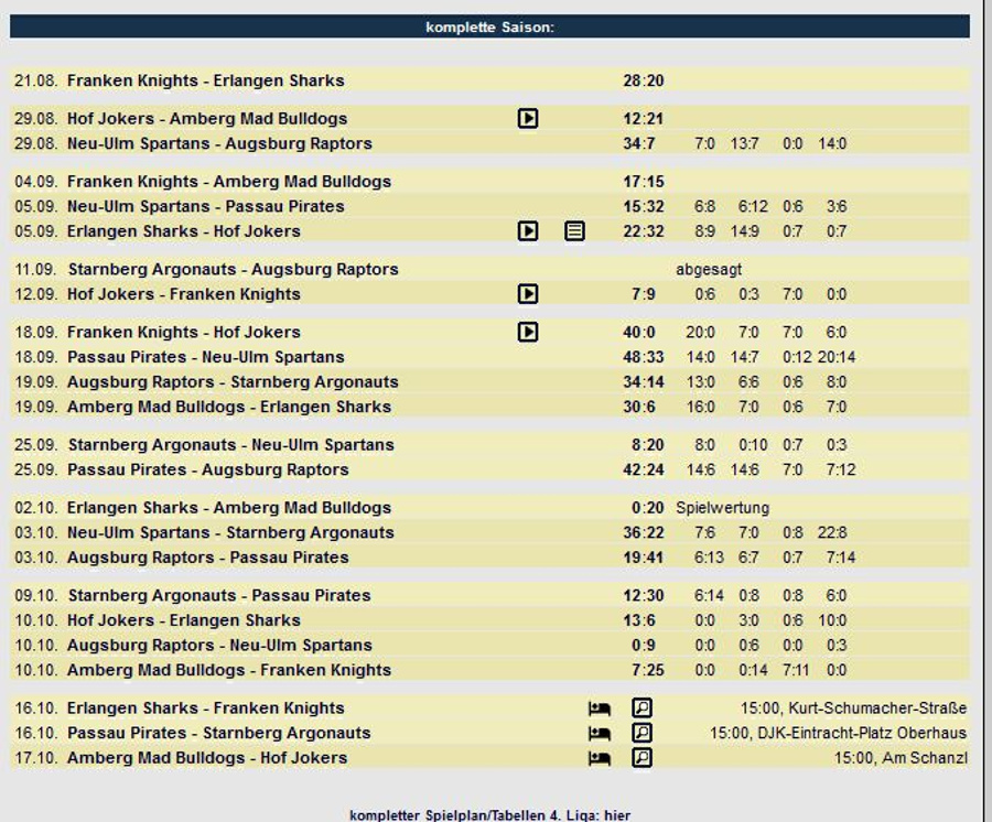 So sieh's aus nach dem letzten Spiel der Spartans und vor dem letzten Spiel der Mad Bulldogs.