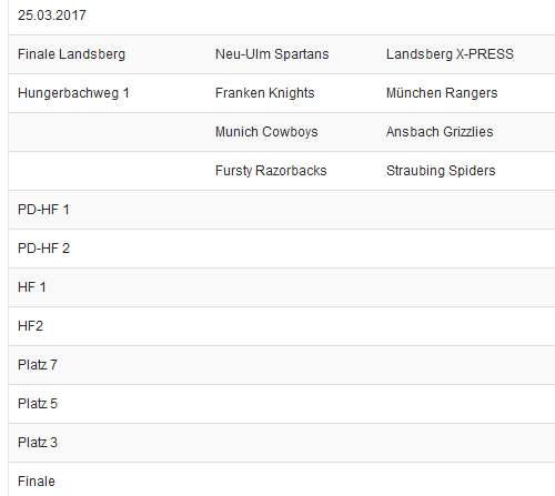 Am kommenden Samstag, 25. März geht es in Landsberg also darum, herauszufinden, ob es eine bessere U13-Mannschaft im Bayerischen Football-Verband gibt als die Jung-Spartans. Als erstes Match (Viertelfinale) geht es gegen den Landsberg XPRESS. Die Jungs sind als Team des Turnier-Ausrichters gesetzt. Ein Sieg der Spartans vorausgesetzt, träfen sie im Halbfinale auf die Munich Cowboys aus der anderen Gruppe oder auf die aus den beiden vorherigen Turnieren bekannten Ansbach Grizzlies. Außerdem spielen im Finalturnier mit: die von der bisherigen Form her favorisierten Fürsty Razorbacks, haben sie doch in dieser Saison noch kein Spiel verloren, sowie die U13-Teams der Franken Knights, der Munich Rangers und der Straubing Spiders.