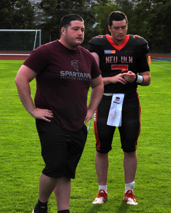 Und ab dann kippte das Spiel. Die Spartans fanden kein Mittel, die Nürnberger Defense zu überwinden. Das sonst so gute Laufspiel wurde immer wieder gebremst. Dadurch fehlten die Möglichkeiten, auch Akzente im Pass einzustreuen. Die Rams-Offense setzte ihrerseits in Halbzeit zwei fast ausschließlich auf den Lauf und behielt hier physisch die Oberhand. Die drei Touchdowns der Rams nach der Pause liefen nach gleichem Muster ab. Die Spartans wussten dem körperlich nichts entgegen zu setzen. Nach einer wilden Szene mit zwei Strafen für die Rams, inklusive der Disqualifikation ihres Headcoach (!) kamen die Spartans nochmal nah an die Endzone und Hunter Sturgeon erlief einen TD zum 24:13 (PAT nicht gut).