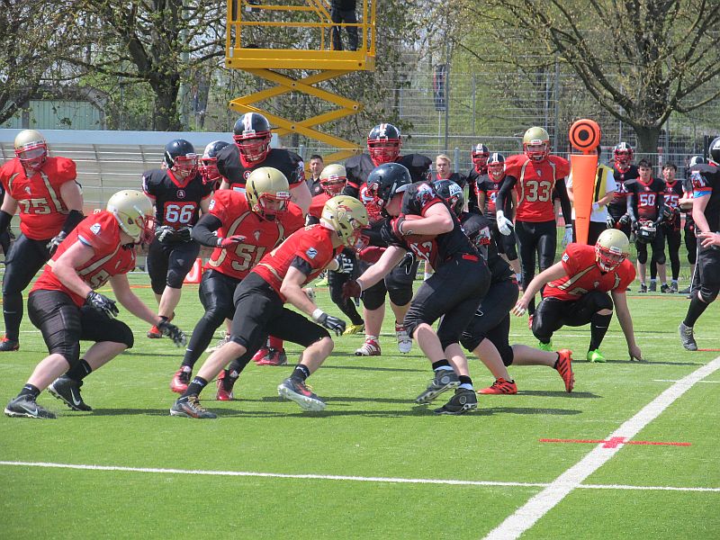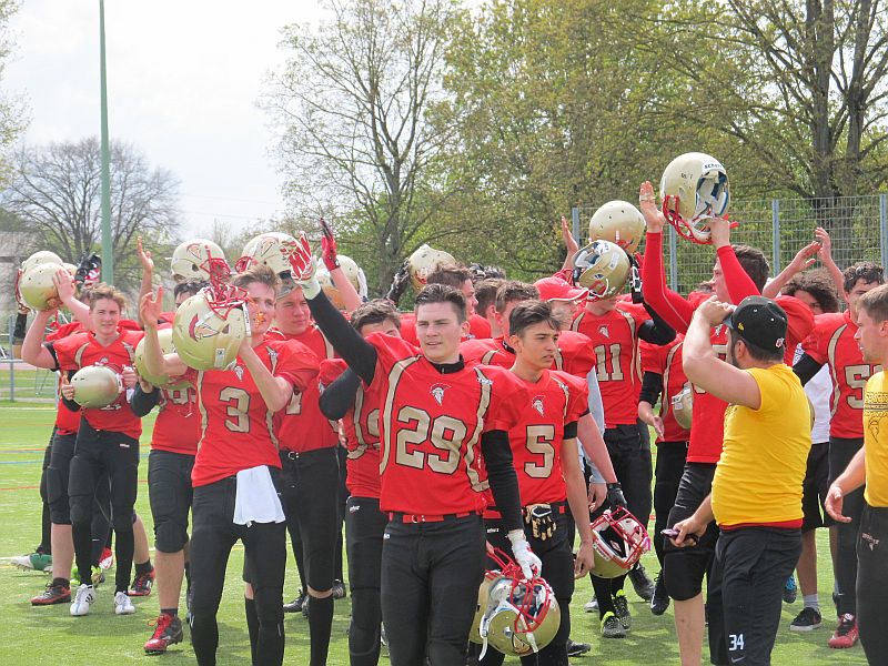 Der Ligastart war am 24. April auswärts gegen die Königsbrunn Ants. Hier profitierten die jungen Spartaner von ihrer langen intensiven Vorbereitung und konnten souverän mit 36:13 gewinnen. Es folgte das Rückspiel, welches ebenfalls mit 44:39 einen Sieg für die Spartans gab. Gegen den späteren Gruppensieger, die Franken Knights, mussten die Spartans am 13. Mai ihre erste Saisonniederlage mit 13:42 einstecken. Das war eine bittere Pille, bei der das Niveau der Liga auch dem Letzten bewusst wurde. Das Team schaffte es aber sich erneut zu konzentrieren und gewann das nächste Spiel gegen München mit 37:27. Es folgte der Angstgegner, die Allgäu Comets, bei denen die Spartans ihr härtestes Spiel der Liga absolvierten und neben einigen Verletzungen ein 7:31 Verlust einsteckten. Mit dieser Niederlage in den Knochen hat es auch im Rückspiel gegen München knapp nicht gereicht (7:12). Für die Zukunft nahm sich das Trainerteam vor, diese schwache Phase während Schulabschlüssen und Pfingstferien unbedingt besser hochzuhalten, um auch in dieser Zeit Ausfälle kompensieren zu können. Allerdings konnten im Heimspiel gegen die Allgäu Comets am Ende der Saison nochmals alle Kräfte mobilisiert werden. Das spannendste Spiel konnten die Spartans im vierten Viertel durch einige taktische Spielzüge und 2 Touchdowns mit 26:21 für sich entscheiden. Dieser schöne Saisonabschluss als Tabellendritter der Gruppe West mit einer ausgeglichenen Punktebilanz gibt Hoffnung für die kommenden Jahre.