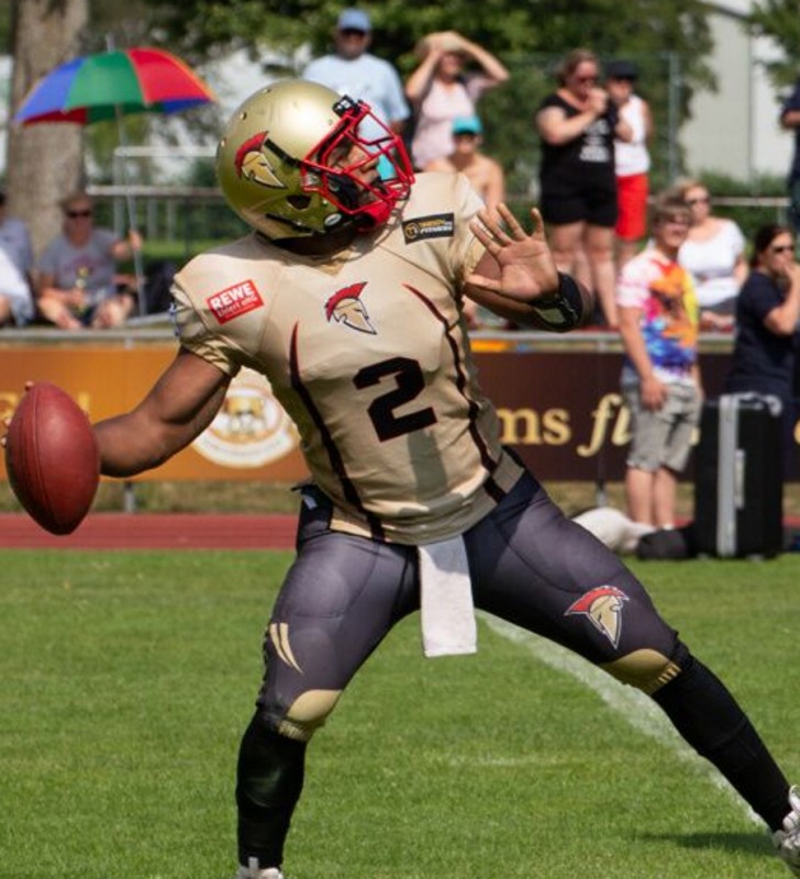 Regensburg Phoenix war sofort vom Kickoff an mit dem Kopf deutlich stärker im Spiel. Die Platzherren zeigten den Neu-Ulmer Gästen genau das, was der Spartans-Coaching-Staff aus dem Video herausgelesen hatte. Insofern wusste man auf Neu-Ulmer Seite, was zu tun war, hatte auch den dementsprechenden Gameplan erstellt, der dann aber auf dem Feld nicht gut ausgeführt werden konnte. Vor allem das Zusammenspiel von Phoenix-Quarterback Cason Whitt (#2) und seinem Wide Receiver Dre Armstrong (#8) war von den Spartans nicht zu stoppen. Da wurden im Defense Backfield Elias Mauritius (#23) und Marius Niepagen (#42) schmerzlich vermisst. Die beiden Stammspieler in der Passverteidigung der Spartans hatten ihre Verletzungen aus dem Spiel gegen Starnberg Argonauts nicht auskurieren können. Der Ausfall zwei so wichtiger „Starter“ war nicht zu verkraften.
