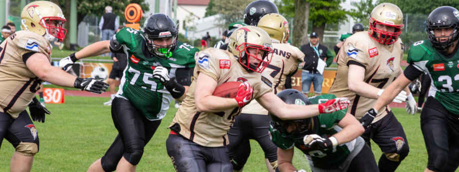Sehr erleichtert, sichtlich sehr erleichtert war Koch, dass die Vorgaben, die unter Woche dem Team gemacht worden waren, beinahe hundertprozentig umgesetzt wurden. Zwar hatte es im Spiel vor Wochenfrist schmerzliche Ausfälle gegeben, vor allem der Achillessehnen-Riss von Mac Retto (für ihn ist die Saison damit vorbei) kann normalerweise nicht kompensiert werden. Normalerweise. Aber Matthias Ast (#21), der schon in der Vorwoche nach Rettos Verletzung ein sehr guter Ersatz war, trmpfte gegen Traunreut groß auf. Viele Läufe mit erheblich Raumgewinn krönte mit zwei Touchdowns.
