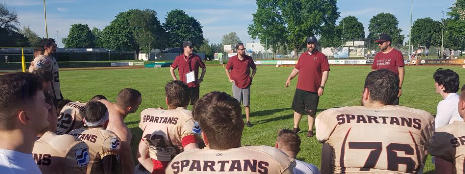 Zur Wahrheit dieses zweiten Saison-Matches gehört: Die Spartans traten mit einem Kader von 43 Athleten an, die Argonauts konnten nur die Mindestzahl von 22 Mann aufbieten, die für ein Meisterschafts-Spiel festgelegt ist. Mit noch frischen Kräften konnten sie im ersten Quarter noch mithalten; den Spartans gelang da nur ein Field Goal (FG). Bereits im zweiten Quarter konnte die Neu-Ulmer Offense um den neuen Quarterback (QB) Hunter Sturgeon (#7) zwei Touchdowns (TD) erzielen: einen per Lauf durch Running Back Dirk Mainka (#34), den zweiten durch Pass von Sturgeon auf Patrick Schempf (#9); für den jeweiligen Zusatzpunkt (PAT) beförderte Max Walser (#56) das Ei gewohnt sicher durch die Torstangen. Und die in der gesamten Begegnung hervorragend orientierte Defense steuerte per Safety zwei Punkte zum Halbzeitstand von 19:0 bei.