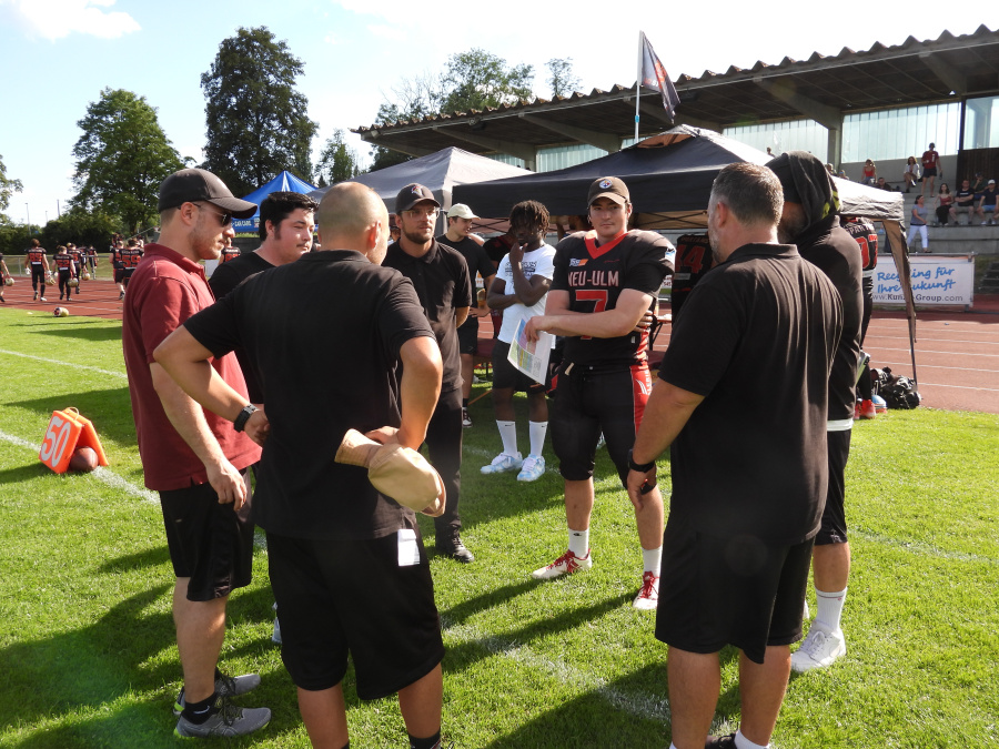 "In der Halbzeit gab es für uns Coaches nicht viel zu sagen, außer Lob für die Offense, die auch in dieser Konstellation sbestens funktioniert hat. Dass Patrick in seinem ersten vollen Spiel als Quarterback in der ersten Halbzeit zwei Touchdowns wirft und drei selbst erläuft, sind schon unglaubliche Zahlen. Und das, wo er die Position seit zwei Jahren nicht trainiert hat, weil er sonst als Wide Receiver so starke Leistungen liefert", sagte Headcoach Daniel Koch als Zwischenfazit.