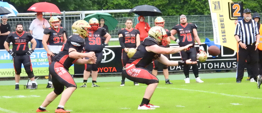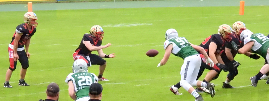 Die Defense spielte souverän, wobei unter anderem Linebacker Walser gleich in der Anfangsphase einen Field Goal Versuch des Gegners blocken konnte und dem X-Press schnell mal der Schneid abgekauft wurde. Nur in einer einzigen Situation ließ man sich nach einem längeren Pass der Landsberger überrumpeln, stellte sich nicht schnell genug auf und ließ so einen Lauf-Touchdown zu.