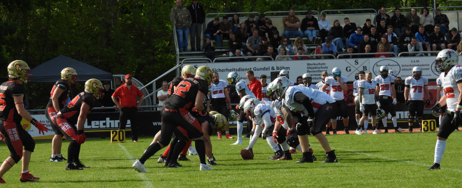 Der Gegner, die Franken Knights, hat sich nach dem gemeinsamen Aufstieg 2022 aus der Bayernliga und einer für die Franken eher enttäuschenden Saison 2023 in der winterlichen Preseason personell noch einmal deutlich verstärkt. Insbesondere die beiden neuen Amerikaner im Team, die Imports Quarterback (QB) Jarrett Zibert und Linebacker (LB) Lawrence Jenkins prägten dann auch das Spiel.