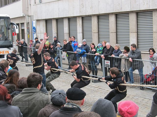 Vergangenes Jahr wurden die Neu-Ulm Spartans süddeutscher Meister im Buspulling, entsprechend traten die Footballer dieses Jahr zur Titelverteidigung an. Bei der 14. Auflage der Meisterschaft vergangenen Sonntag in der Ehinger Innenstadt konnte das Team jedoch abermals nicht gestoppt werden. In der Zeit von 15.78 Sekunden zogen sie den 12 Tonnen schweren Bus über die 30 Meter Strecke. Auch das zweite Team der Spartans demonstrierte die richtige Mischung aus Kraft, Ausdauer, und Technik, und erreichte in der starken Konkurrenz von 10 Mannschaften einen respektablen vierten Platz. Dabei unterboten sie mit 16.21 Sekunden ebenfalls die Siegerzeit des vergangenen Jahres.