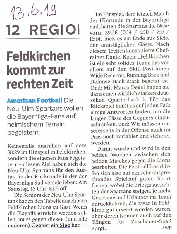 Spartans wollten sich keinesfalls ausruhen auf dem 38:29 im Hinspiel in Feldkirchen, sondern die eigenen Fans begeistern - kommen aber per 20:0-Wertung zu zwei Punkten