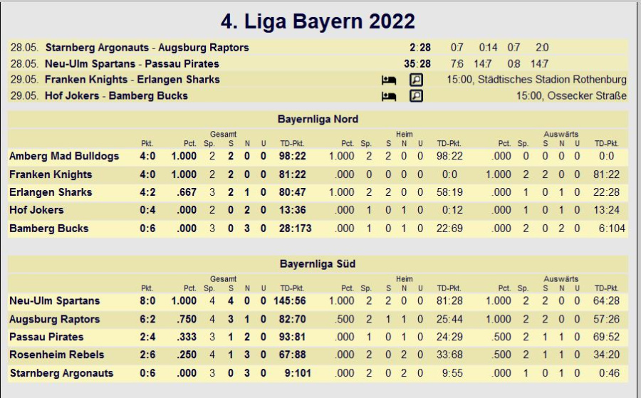 In zwei Wochen gibt es bereits das Rückspiel in Passau, das wohl die Vorentscheidung um den Sieg der Südgruppe bringen wird. Zuvor geht es für die Spartans am 4.6. noch zu den Argonauts nach Starnberg.