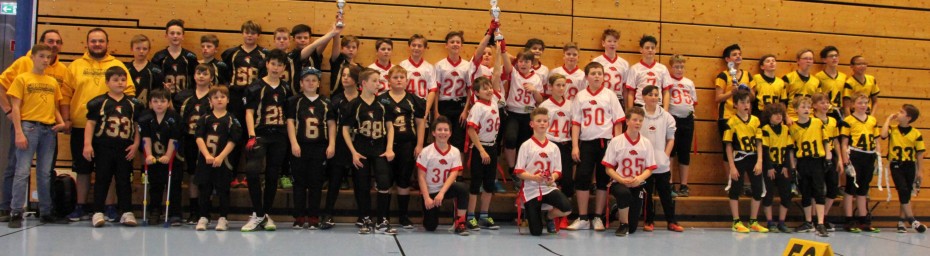 Dritter geworden ist die U13 der Neu-Ulm Spartans bei den diesjährigen Bayerischen Meisterschaften im Hallen-Flagfootball. Das kleine Finale um den 3. Platz hat sie gegen die Franken Knights mit 20:13 gewonnen.